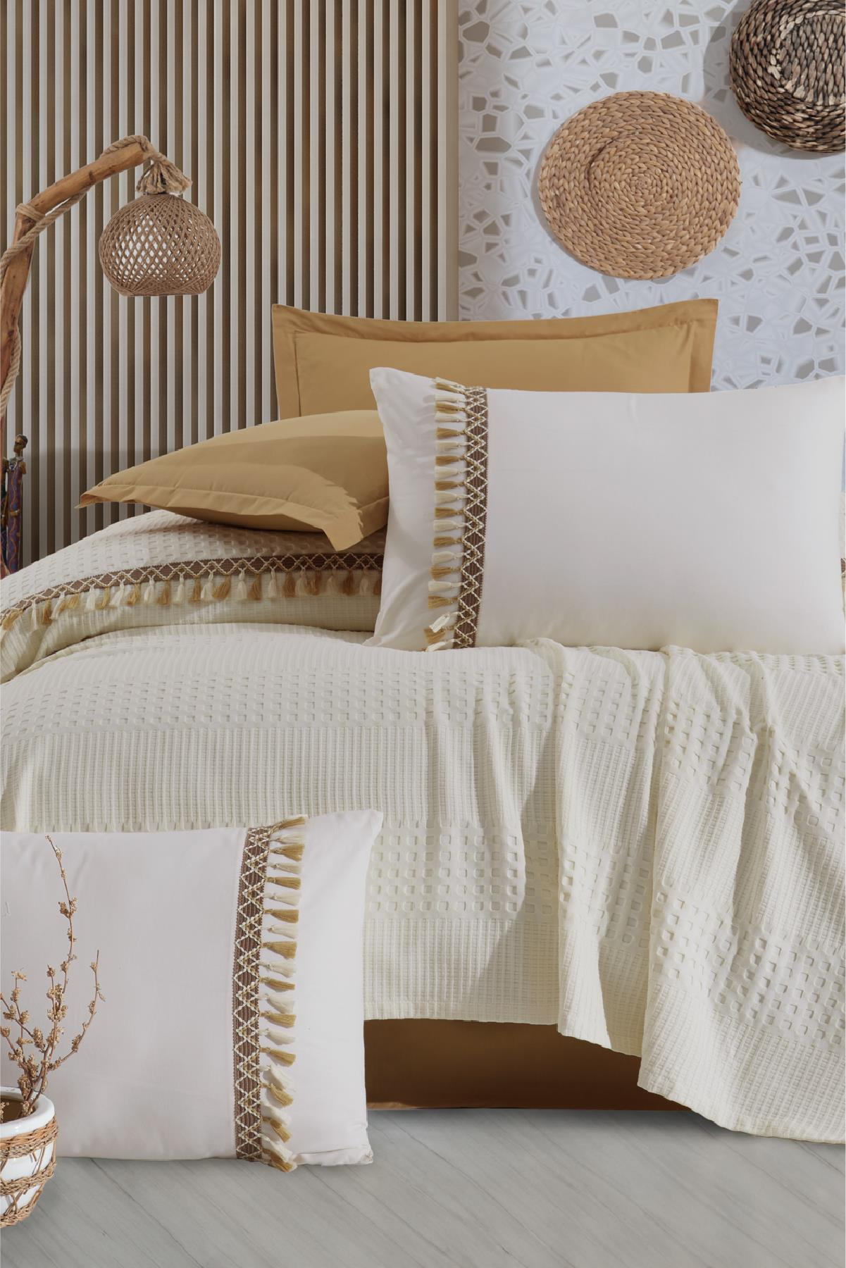 Clasy Butik Çift Kişilik Pike Takımı Bohamline V5 Ekru